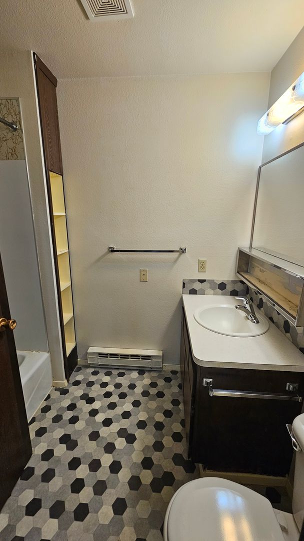 1 bed, 1 bath apartment in CDA, ground level with electric baseboard heat. Rent includes water, sewer & garbage. Cats ok, no dogs.